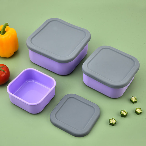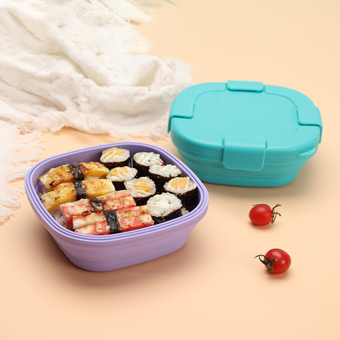 Caja rectangular portátil de grado alimenticio colorida, caja fresca, fiambrera de silicona con tapa